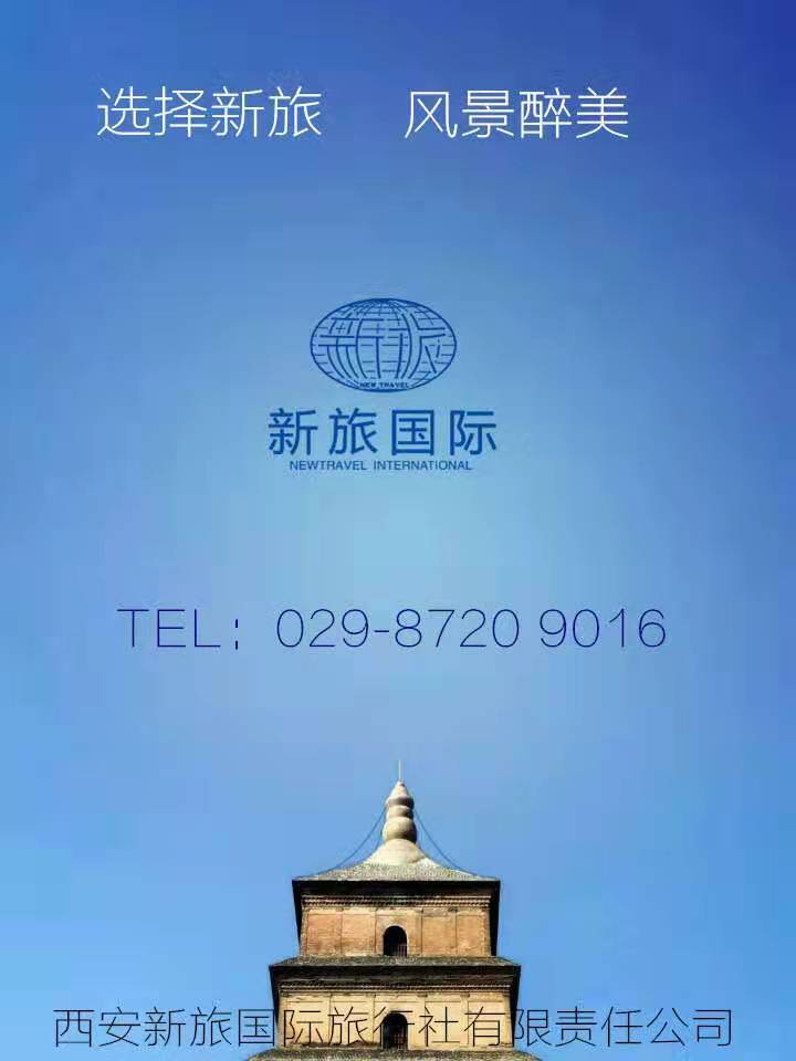 我們堅(jiān)持遵循:以質(zhì)量求生存、以創(chuàng)新求發(fā)展、以市場為導(dǎo)向、以服務(wù)為宗旨的經(jīng)營理念,為游客提供全方位、多元化、高層次的服務(wù)。 感謝各位對西安新旅國際旅行社的支持!