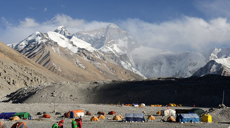 清晨前往世界上海拔最高的【珠峰自然保護(hù)區(qū)】,途經(jīng)建于1899年的西藏紅教寺廟絨布寺(不含門(mén)票海拔海拔5154米,是世界上海拔最高的寺廟,該寺距離珠峰頂約20公里,在這里您可以面對(duì)面一睹世界第一高峰—珠穆朗瑪峰的雄姿,坐環(huán)保車(chē)前往珠峰大本營(yíng),感受大自然的壯麗。參觀珠峰的景色,晚上入住大本營(yíng)的多人帳篷。